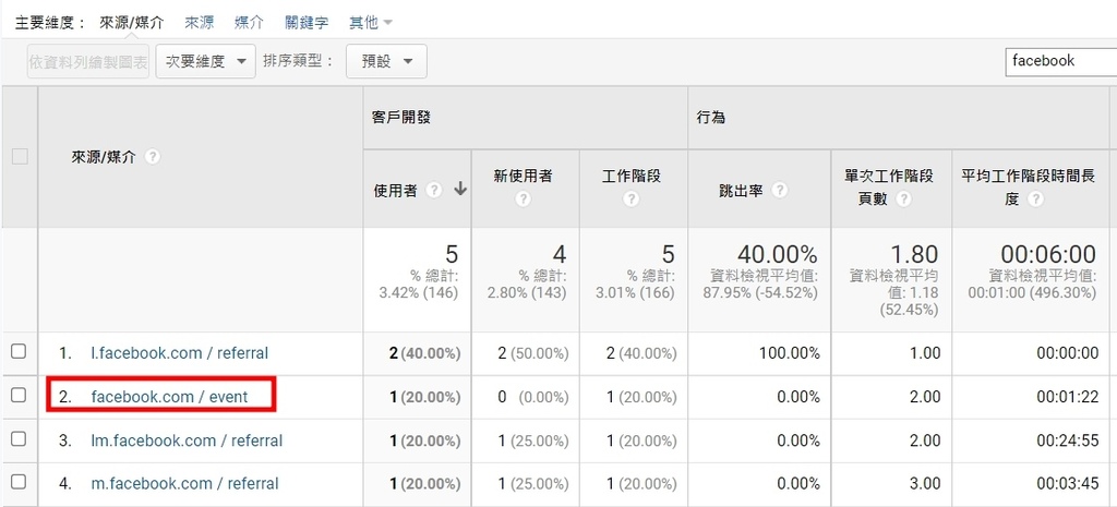 假設今天我們在Facebook舉辦一個抽獎活動,活動方式是由FB導到官網做互動,但不管訪客是點擊哪則貼文連結,只要從FB導過來的來源/媒介都會是「Facebook.com/referral」,這樣我們就不知道究竟造成網站流量變高的因素是不是這則抽獎貼文,還是壓根就是別則貼文呢?所以我們必須使用網址產生器,透過Google所開發的UTM標記技術,可以自訂來源/媒介及廣告活動,這樣我們就可以把該則抽獎的導連結的媒介改為「event」,就可知道有多少流量是透過「Facebook.com/event」來的(如下圖),甚至還可以利用廣告活動及廣告內容來細分不同則貼文,在「廣告活動」的報表也會顯示出來!除此之外,像是線下展覽、企業出版的年曆等,都可以加上帶有UTM標記的QRcode,就可以計算有多少訪客是透過QRcode掃描後進到網站唷!