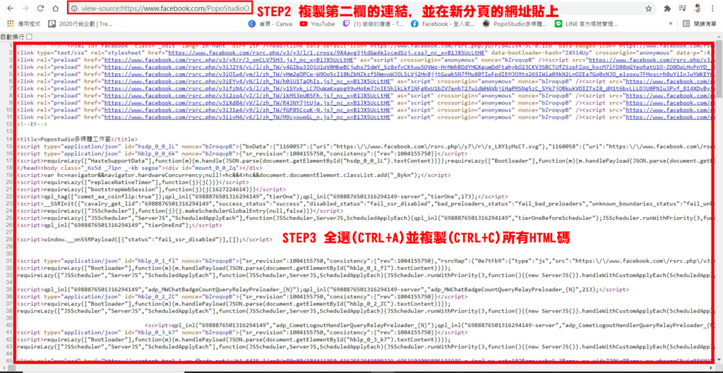 - 第三步:全選(CTRL+A)並複製(CTRL+C)所有HTML碼