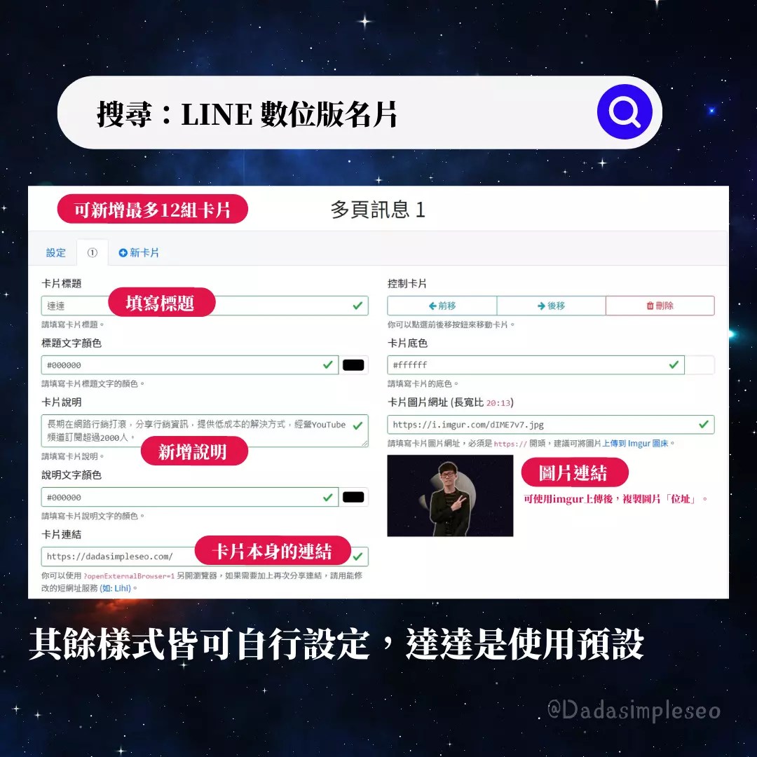 介紹:來自 LINE 的樣板,最多 12 張卡片,很適合用來製作廣告傳單。