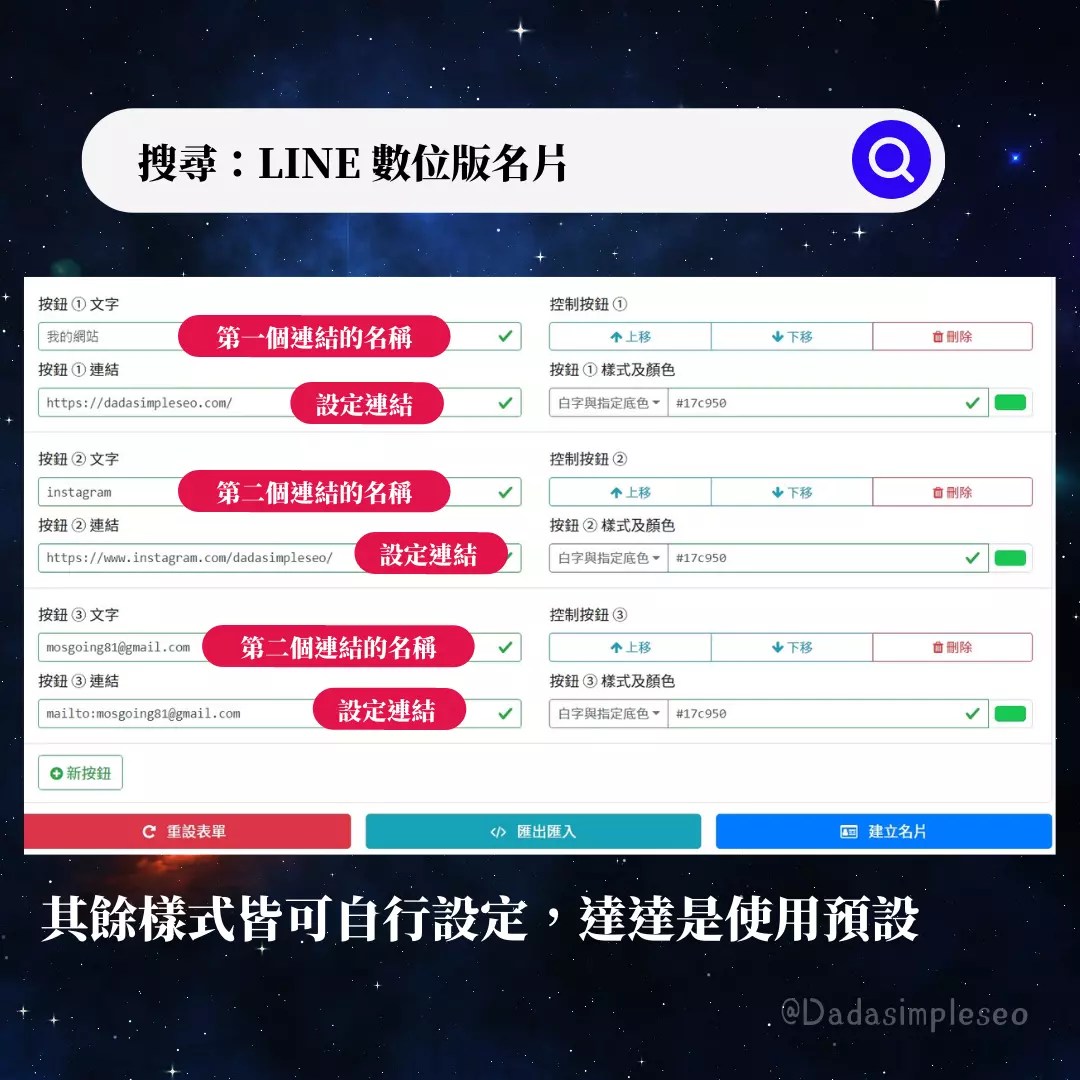 2.連結容易:透過數位名片的按鈕,可以直接連結到公司的官網、Email或是附上職稱及電話等。