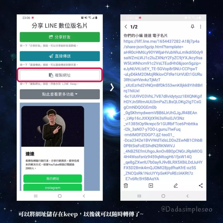 3.省時便利:使用數位名片可以省去找一堆連結、描述,打一坨訊息後送出,只需要簡單的一鍵轉傳,並以問候開場,即是一個完整的自我介紹。