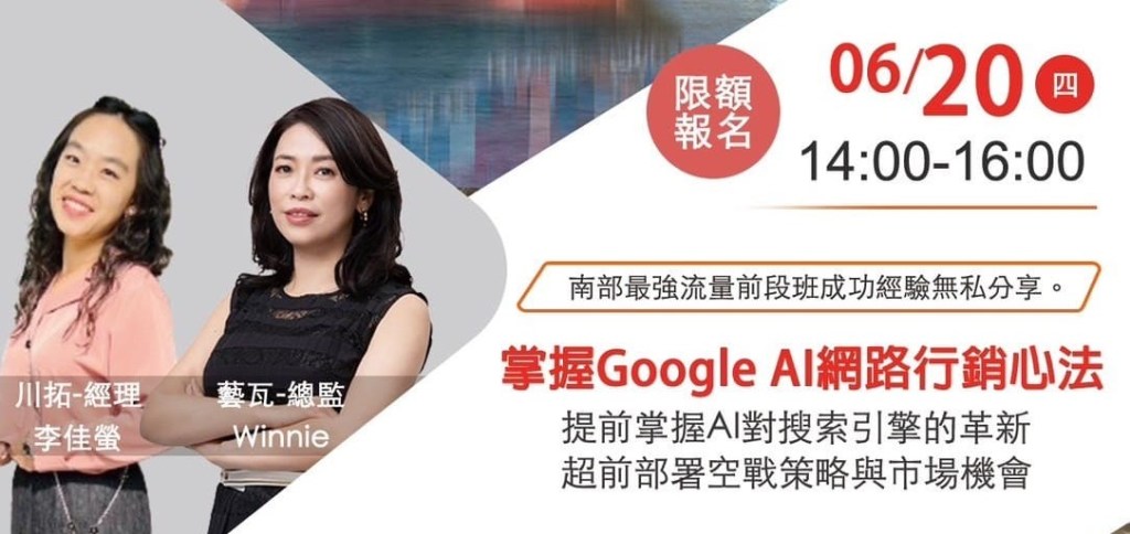 今(20日)於高雄左營蓮潭會館所舉辦的「掌握Google AI網路行銷心法」講座,由崴浤科技總經理,人稱網路行銷教父的 徐維鴻總經理為第一棒來闡述自身做網路的歷史,徐總如何由4個人的團隊壯碩到目前為130人的企業,且在這飽和的網路行銷市場中,還能有超過30%的成長率,徐總表示:「崴浤130人中,業務只佔了40幾人,反倒是內勤有80多位員工」這也是展現了技術人員與背後的團隊是幫助廠商客戶重要的幕後推手。